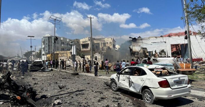 A general view shows the scene of an explosion in the Hamarweyne district of Mogadishu, Somalia, January 12, 2022. REUTERS/Feisal Omar