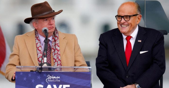 [1/3]Attorney John Eastman speaks next to U.S. President Donald Trump’s personal attorney Rudy Giuliani, as Trump supporters gather ahead of the president’s speech to contest the certification by the U.S. Congress of the results of the 2020 U.S. presidential election on the Ellipse in Washington, U.S, Acquire Licensing Rights