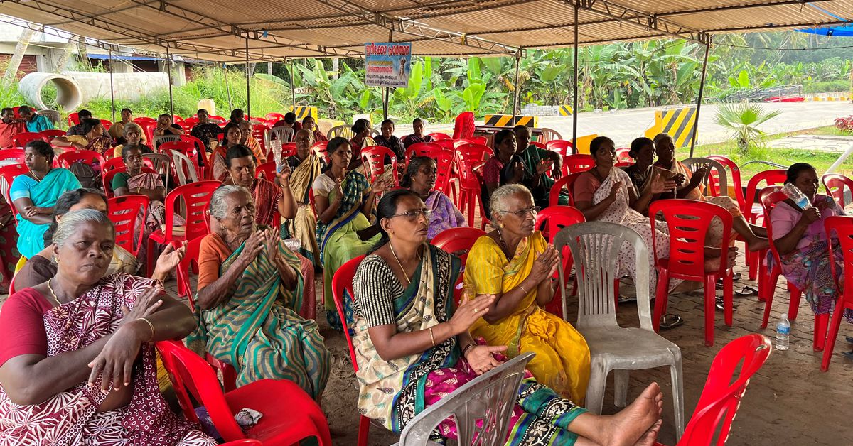 Each day, the protesters and port supporters blare music from loudspeakers and chant slogans. Prakash R describes the situation as a standoff between “people of the sea”, who are mostly Christian and make their living from fishing and “people of the land” who are predominantly Hindu.