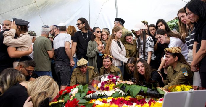 [1/8] Friends and family mourn Lia Ben-Nun, an Israeli soldier who was killed by a member of the Egyptian security services along with two other soldiers near Israel’s border with Egypt, at her funeral in Rishon Lezion, Israel June 4, 2023. REUTERS/Shir Torem