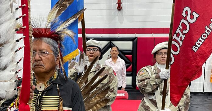 Lawrence SpottedBird, the newly elected chairman of the Kiowa tribe, said he’s a veteran and feels as American as anyone. But he said it’s far overdue that the country stops “whitewashing the brutal history” of the boarding school system.