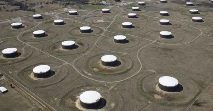 Crude oil storage tanks are seen from above at the Cushing oil hub, in Cushing, Oklahoma, March 24, 2016. REUTERS/Nick Oxford//File Photo