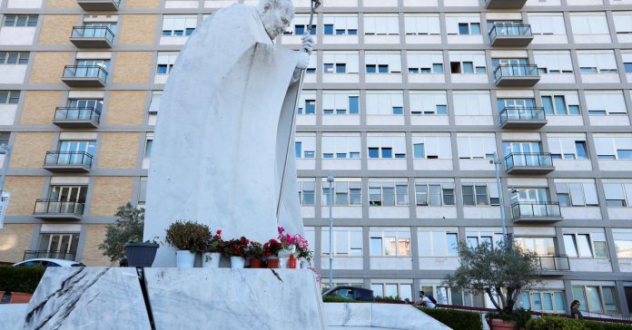 Pope ‘progressively improving,’ off I.V. tubes, moving about
